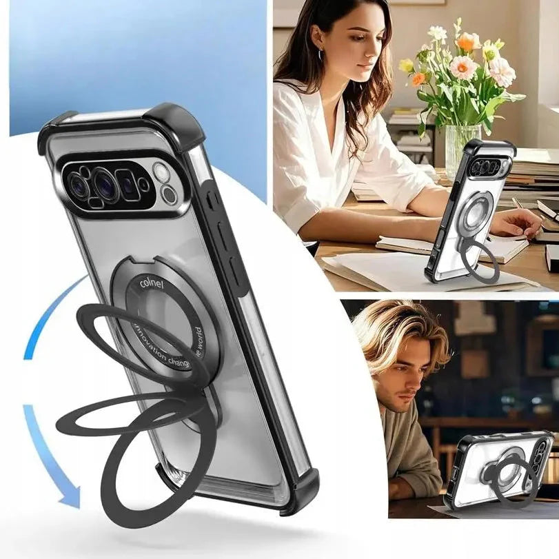 The built-in 360° rotating ring holder offers a secure grip for comfortable one-hand use and works as a convenient kickstand for hands-free viewing. Slim, lightweight, and precision-crafted, this case ensures full access to all buttons, ports, and camera features without adding bulk.