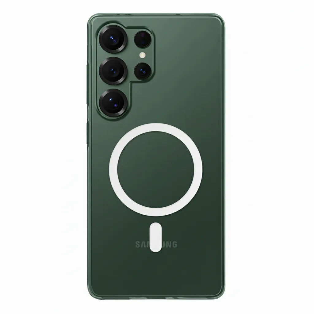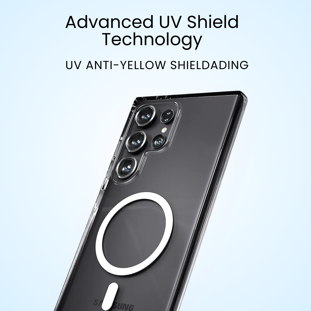 Show off your Samsung Galaxy S22 Ultra while keeping it fully protected with the Cosmos Joy Anti-Yellow MagSafe Clear Case. Engineered with advanced UV-shield technology, this crystal clear case resists yellowing and preserves long-lasting transparency. Built-in high-strength magnets deliver precise MagSafe alignment for secure attachment and fast wireless charging. Designed with reinforced shock-absorbing corners and a slim profile, it offers dependable drop protection without adding bulk.